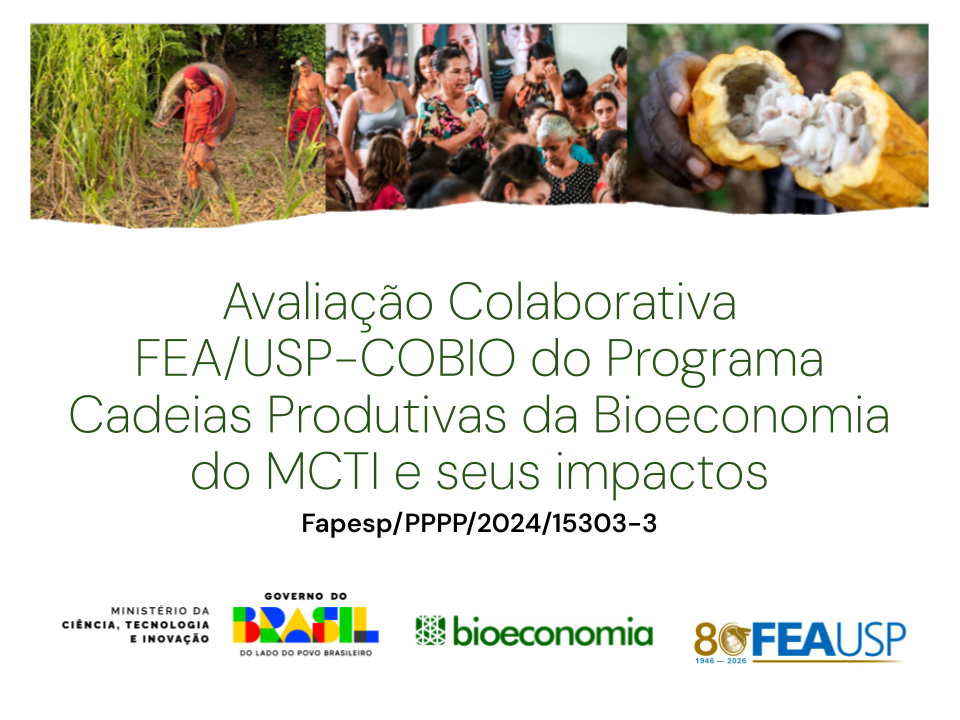 A Faculdade de Economia, Administração, Contabilidade e Atuária (FEA/USP), em parceria com o Ministério da Ciência, Tecnologia e Inovação (MCTI), anuncia a abertura de processos seletivos para bolsas de pesquisa financiadas pela FAPESP . As vagas integram o projeto “Avaliação Colaborativa do Programa Cadeias Produtivas da Bioeconomia do MCTI e seus impactos”, sob a supervisão dos professores Jacques Marcovitch e Maria Sylvia M. Saes.